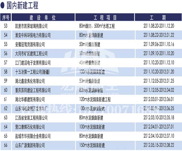 宏順建設(shè)工程有限公司是國家批準(zhǔn)成立的專業(yè)高空作業(yè)企業(yè):承攬過(國內(nèi).國外)煙囪新建、煙囪防腐、磚煙囪新建、煙囪改造、煙囪維修、煙囪脫硫防腐、煙囪拆除加高、煙囪滑膜等高空作業(yè)工程。具有“不搭腳手架 、 不需要停產(chǎn)”施工特點。
